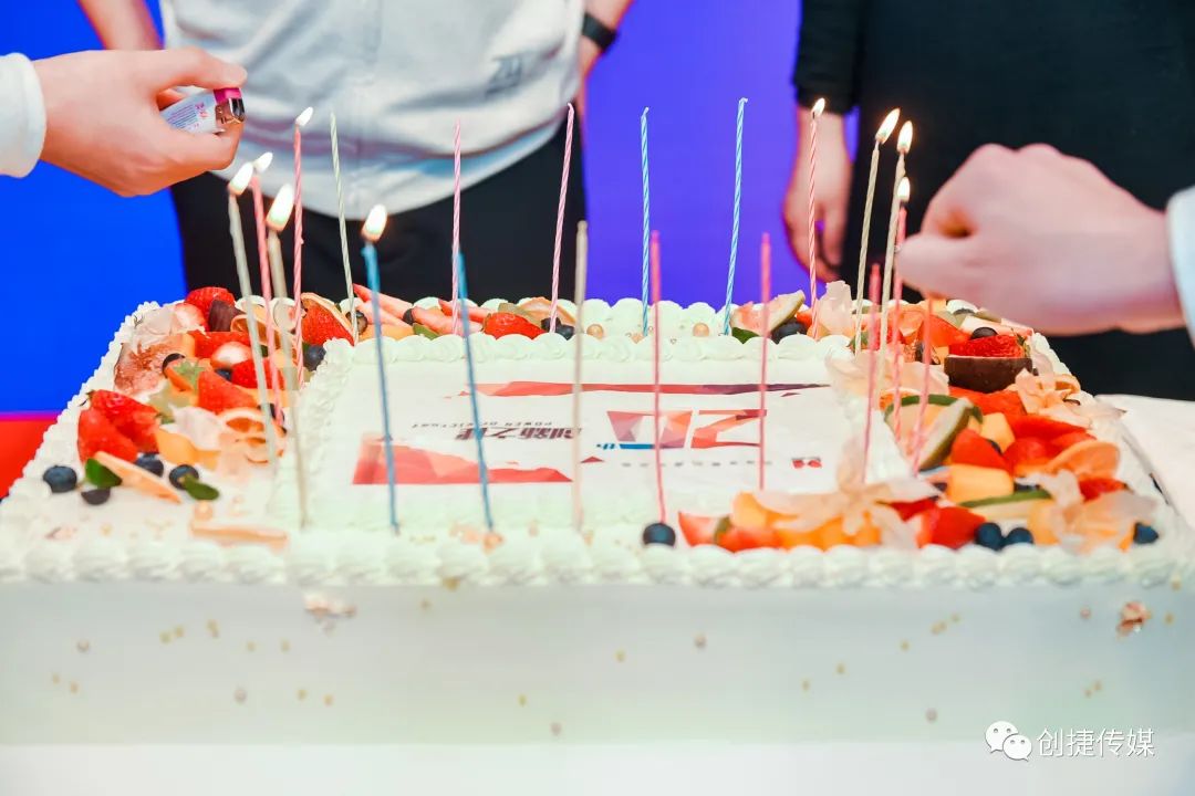这是一场聚力同行的盛会,灯光熄灭,伴随着生日快乐歌,全体创捷伙伴一起许愿,分享甜蜜的蛋糕,感受幸福和喜悦,共同开启创捷传媒下一个精彩的十年。