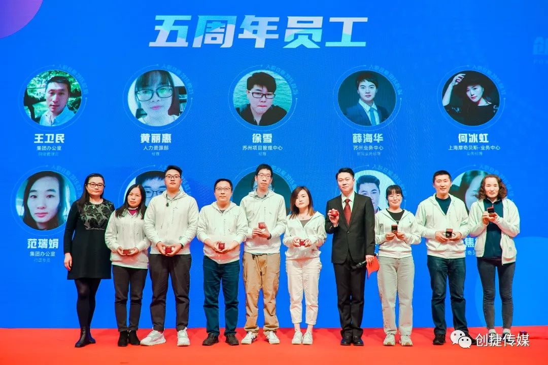 颁奖环节,公司为入司满五周年员工举行了表彰仪式;优秀新人、优秀一线部门员工、优秀职能部门员工、优秀管理者、优秀集体也相继颁发。感谢他们用青春和热血书写创捷的美好篇章。