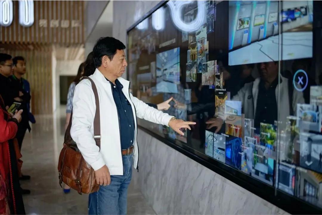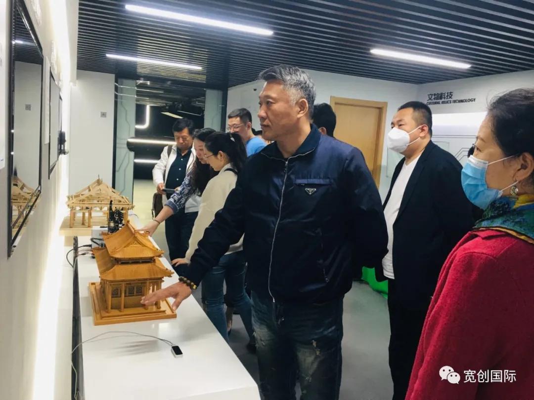 考察团一行领导参观了宽创国际文化科技馆,从魔墙、设计院和展厅三个区域大家多维度、多视角的深入了解了关于宽创国际的发展历程、经典作品案例和科技展示。