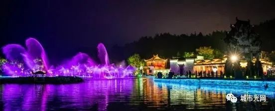 当晚,西递村灯火通明,绚烂的光束,游离照耀着粉墙黛瓦的徽派建筑,喷泉水幕被投影成各式景观,有古典楼阁,有小桥流水,有层叠宫殿,景象壮观。