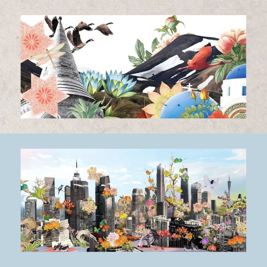 最终,团队聚焦于以西方拼贴形式呈现当代广州城景,结合岭南传统花鸟的画像风格,却让其以夸张且不成比例的形态出现,实现中西新旧元素的巧妙交融,描绘了一幅传统文化在当代城市新生的长卷。