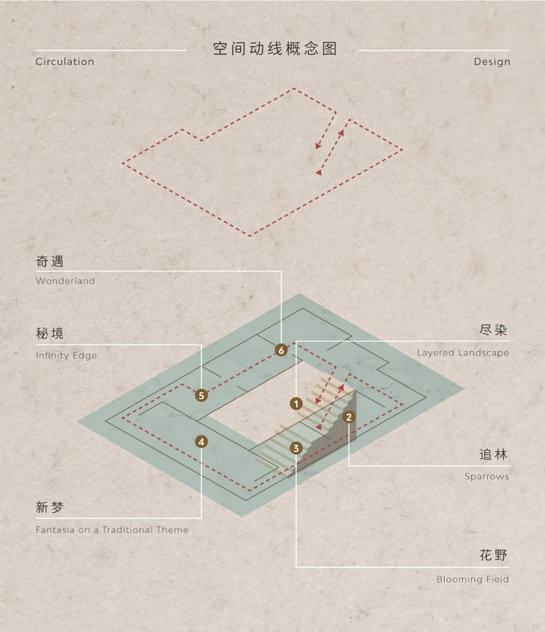 根据体验动线对前来游览参观的人群作心理分析。从岭南文化的初识到印象构建,由浅至深,独特的体验激发观者自主探索,在创新体验中领略岭南文化的古典之美,展开文化传承的未来奇想。