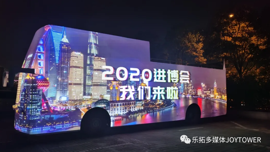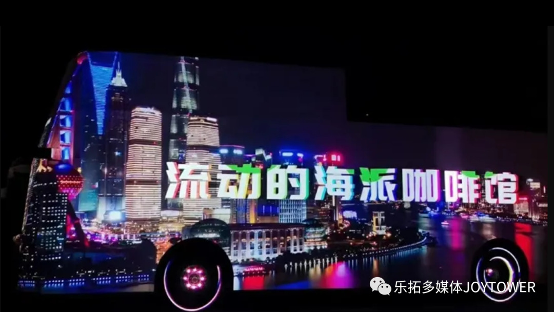 在11月4日的直播里,我们见到了央视频红色大巴车变身流动的海派咖啡馆,不过这辆双层巴士的变身秀可不止这些。今年,由乐拓科技改造升级的夜间大巴,将“咖啡馆”幻化成一场可以动的灯光秀,吸引大量游客拍照打卡。