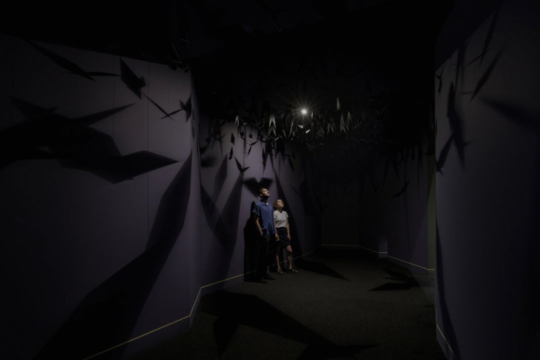 当观众穿过森林走入完全的黑暗中时,他们会发现一个蝙蝠洞穴。设计团队将受控LED灯与皮影戏进行巧妙结合,模拟出一群飞舞的蝙蝠,营造出身临其境的体验感。
