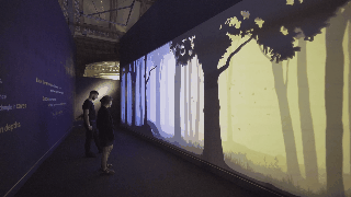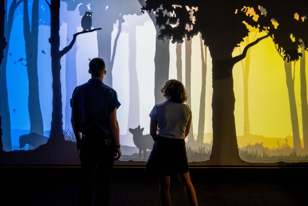 旅程从一个美丽的多层投影艺术作品开始,它带领观众在夜幕降临之时穿越过一片森林。在这里,由投影展现的狐狸、猫头鹰、獾展现了它们有趣的夜间活动习惯。