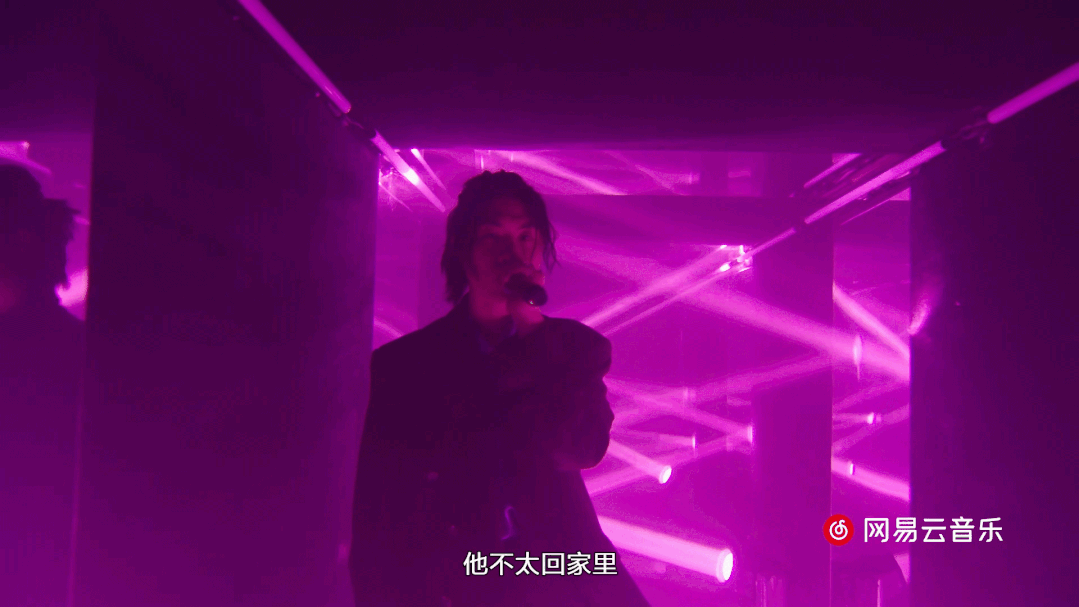 年度团队C-BLOCK的三位音乐人,专属定制了属于他们专色的空间,紫色代表着大傻音乐和内心的浪漫,金黄色灯柱场景代表了他音乐中的热忱与冲劲,拍摄上通过斯坦尼康一镜的方式链接不同表演者的Verse段落,也加入了更属于说唱音乐的镜头互动方式。