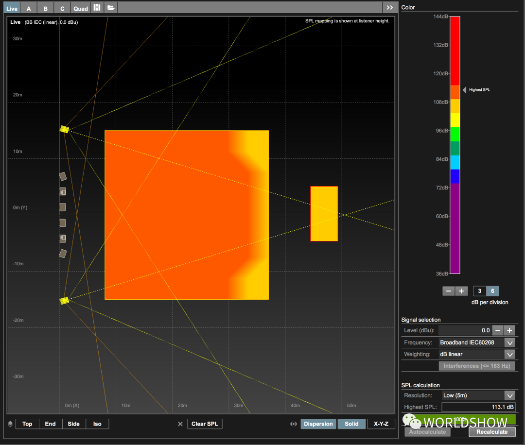 “本次场地的硬反射比较大,这次选择的音响设备为来自d&b的KSL系列,外加SL-G Sub,利用自带的AP功能,可以更有效的控制声音的分布,让现场观众感受富有能量的声音的同时保证出色的清晰度。”邓成龙介绍道。