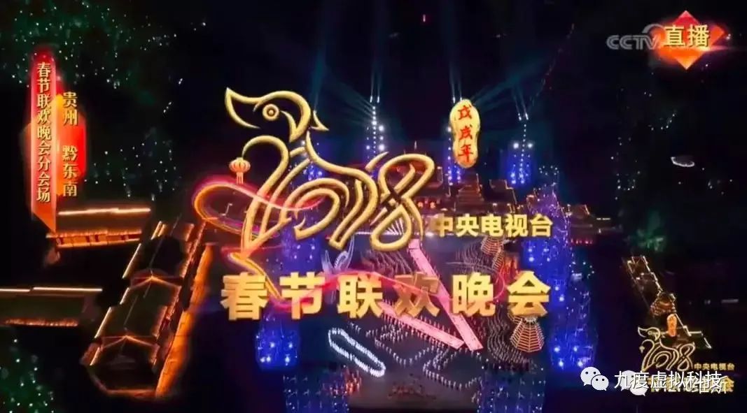 在2018年央视春晚贵州分会场上,春晚制作团队使用Vizrt虚拟技术精心打造。晚会在贵州省肇兴侗寨举办,由苗侗两族共同演绎出精彩绝伦的民俗歌舞节目;分会场节目分为三个篇章,根据导演组编排将亦真亦幻的虚拟场景和地面视频的变幻穿插呈现在节目中。