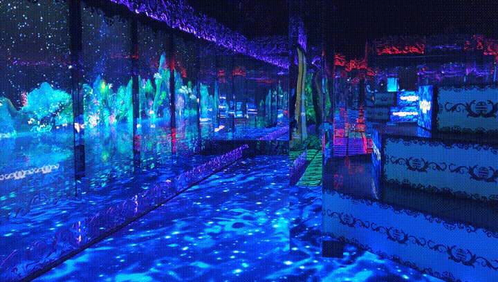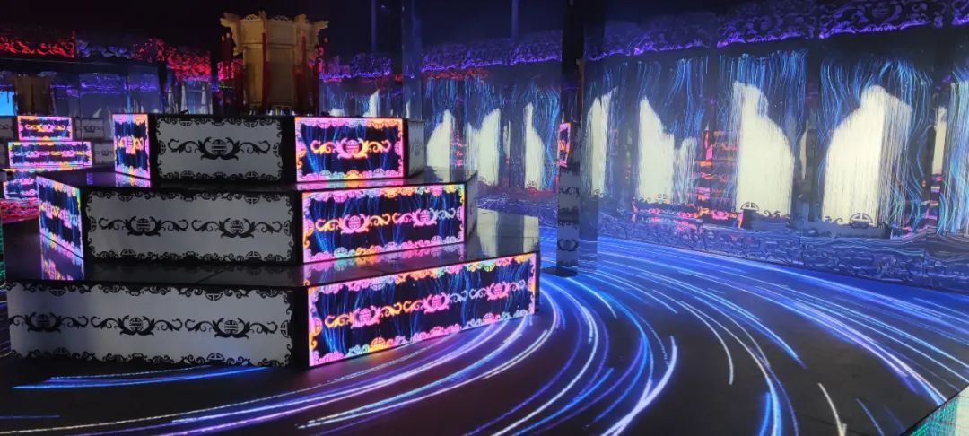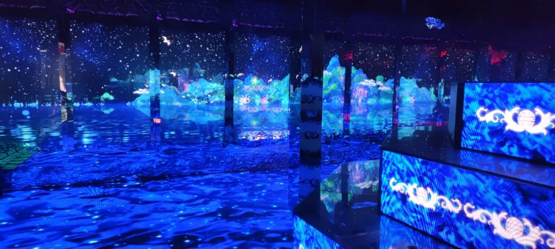 Hirender媒体服务器一控两显分别输出12路4K信号至LED显示屏和33块大尺寸的LCD(液晶显示器),通过切片功能使场所两侧的LCD拼接显示一幅连绵完整的长幅画卷,高清细腻的显示效果与唯美巧妙的素材相融合,成为现实版的“舟行碧波上,人在画中游。”
