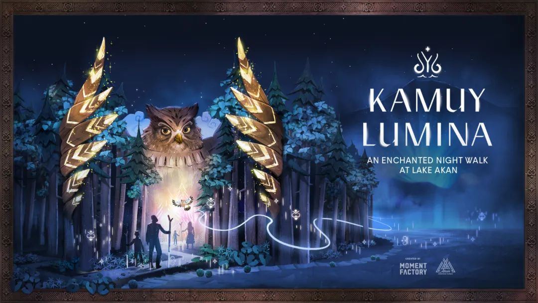 这场夜间之旅以当地传说中的森林幽灵-Kamuy命名,共设有九大主题情节,讲述了猫头鹰寻找使者去拯救正陷于困境中人类的故事,再现了一个阿伊努人世代相传的古老故事世界。