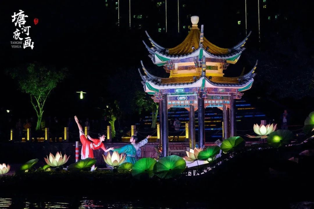 大型行进式水上夜游演出《塘河夜画》
