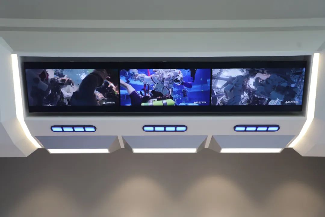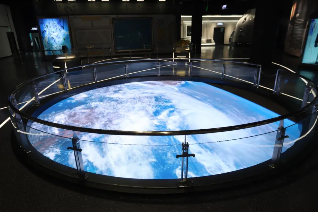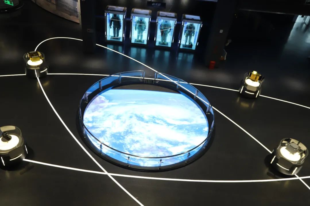 展项位置处于天宫空间站正下方,游客可通过LED 地屏,在空间站内部可从观景台向外瞭望美丽的“地球”,体验宇航员在太空中观察家园的激动之情。