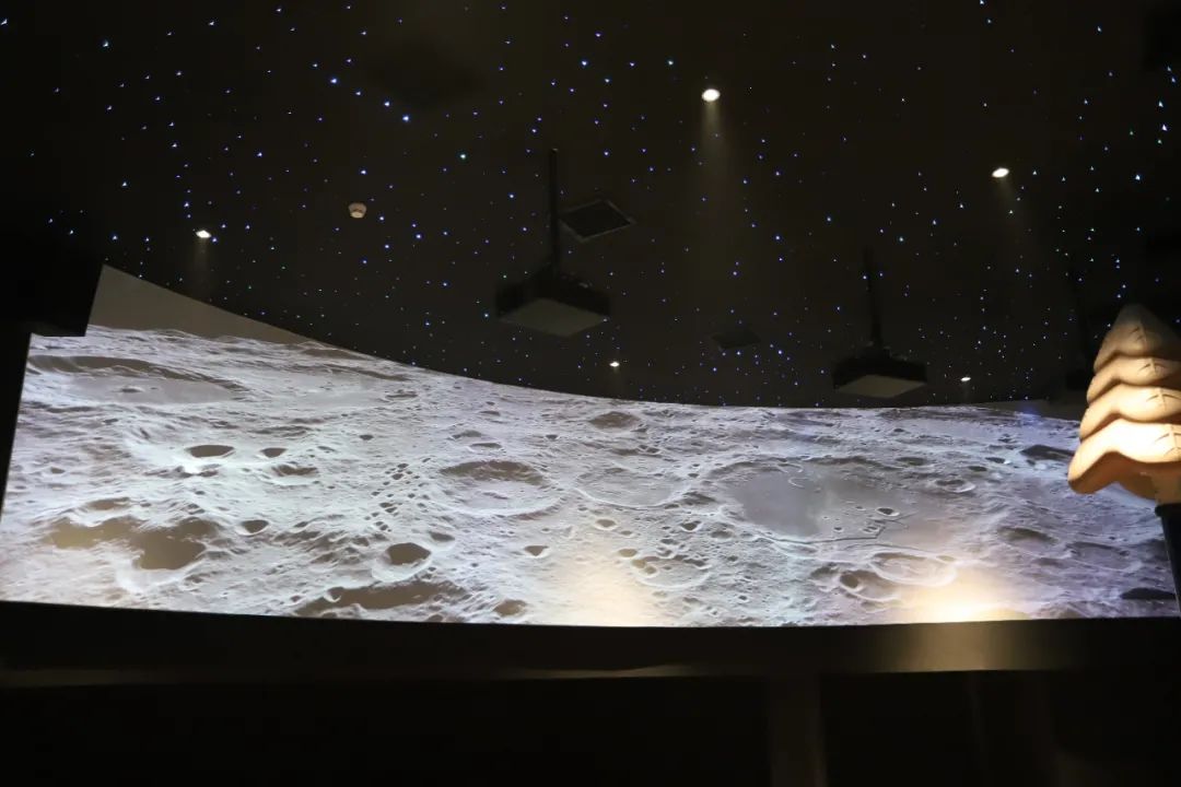 利用穹顶将观众的水平视角和垂直视角都包含在银幕画面之中,可以使人产生身临其境的真实感觉,搭配宇宙浩瀚无穷的影片内容,使体验者感受时空变幻,给人以震撼、新奇的视觉享受。