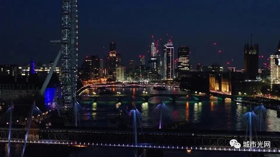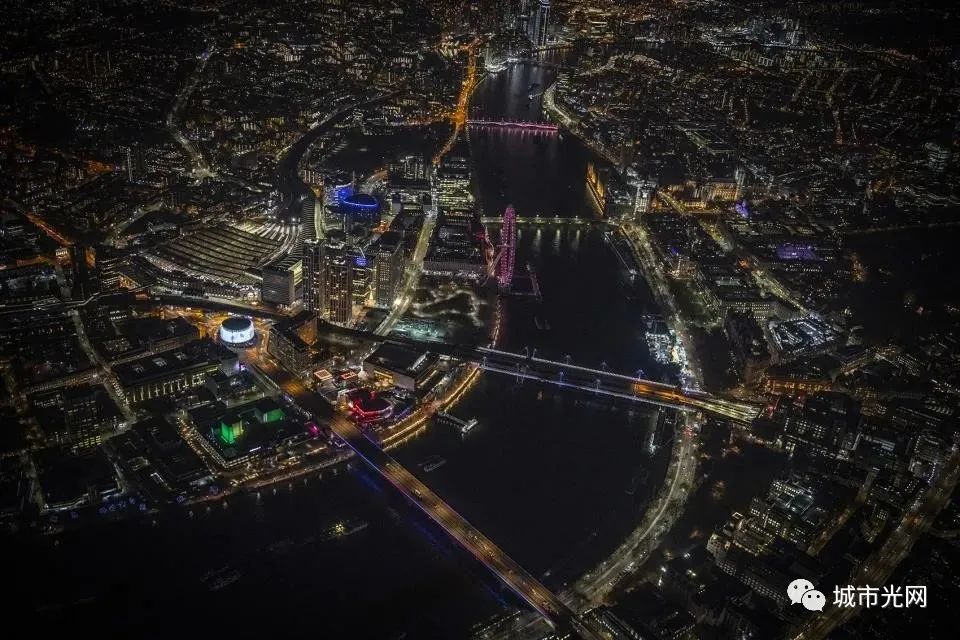 在“光河”的映衬下,夜间的泰晤士河显得更加美丽而平静,在这里,人们不仅能够欣赏河流与桥梁,同时也会注意到沿着伦敦河的各种建筑和工程遗产。
