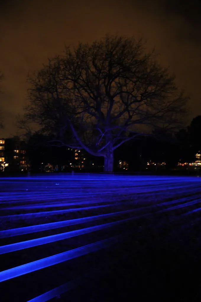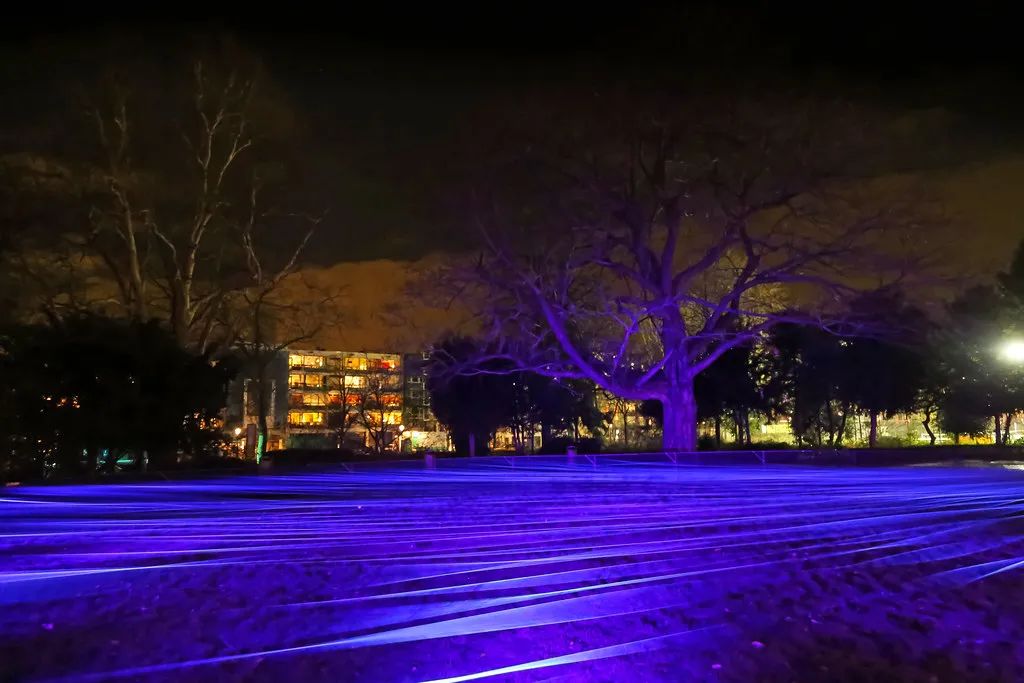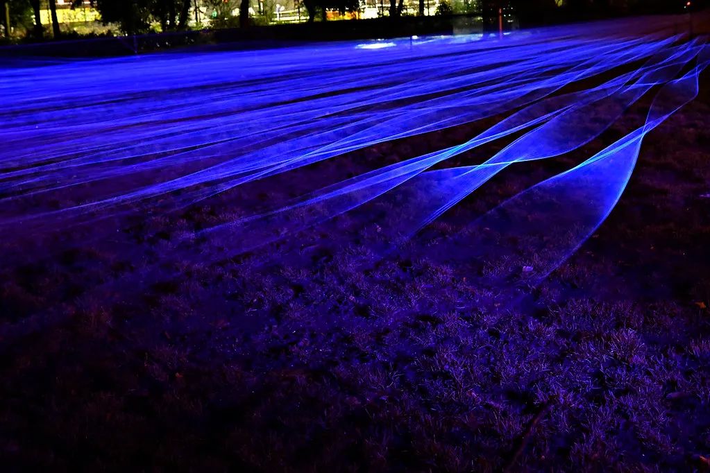 作品被放置在灯光节上的一处公园里,Yasuhiro Chida经常在自然环境中创建大型装置,他也喜欢使用简单的材料进行创作。