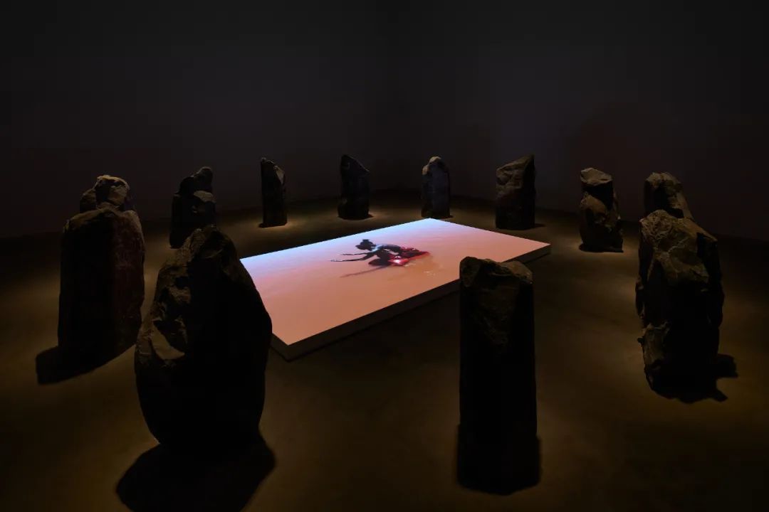 将手插进泥土里,即可完成与屏幕的交互,青年艺术家艾莎·谭·琼斯的作品《梦之门纹章石》将科技植入热带雨林,试图呈现一种另类的、乐观的反乌托邦,他们借由宗教仪式来工作,通过手工艺去冥想,在自然和其他万物之间的面纱中跳舞。出身东北的具有满族血统的王拓离开纽约后,开始了关于故乡的创作。此次新作《通古斯》是“东北四部曲”中的第三个篇章,“王拓通过讲述故事来解读社会的深层无意识。他指认出一种‘社会的泛萨满化’的时刻,在这一瞬间,整个社会在某种意义上都失去了理性”(策展人由宓语)。