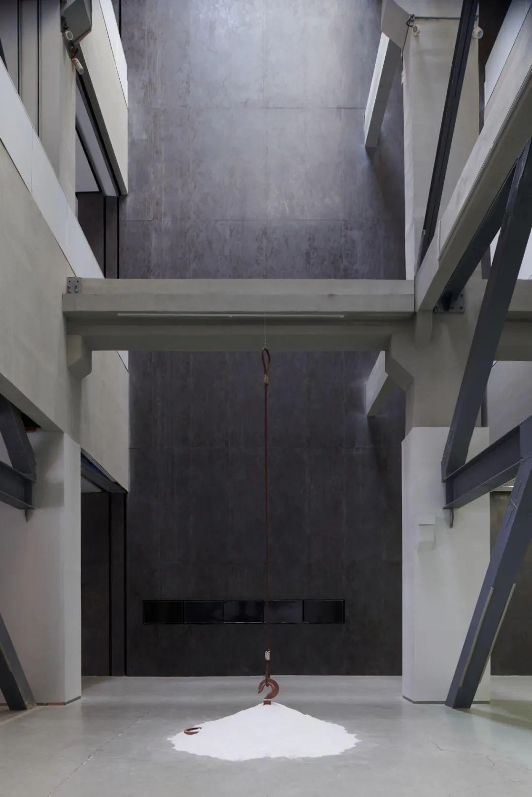 奇普(Quipu或khipu)原来是古代印加人的一种结绳记事的方法,在塞西莉亚这里,它成了创作工具。鲜红的奇普,成为巨大的装置悬挂在PSA 27米高的展厅内,像一根根脐带,自空中悬落自土地。艺术家希望借用女性的创造力为智利圣地亚哥附近被破坏的冰川祈祷,“我在60年代中期了解到地球淡水水源濒临殆尽,这促使我创作了一系列与之相关的作品。半个世纪后的今天,生态危机依旧极为紧迫,本届上海双年展的主题‘水体’亦是对此情况的紧急呼吁,身为艺术家的我们可以感受到自己身体与地球上水体的痛苦。我想到了一句安第斯的名言‘Hilo de agua, hilo de vida’(水为线,生命之线)。我的创作意在恢复水与血之间的古老联系,祈求它的延续。”