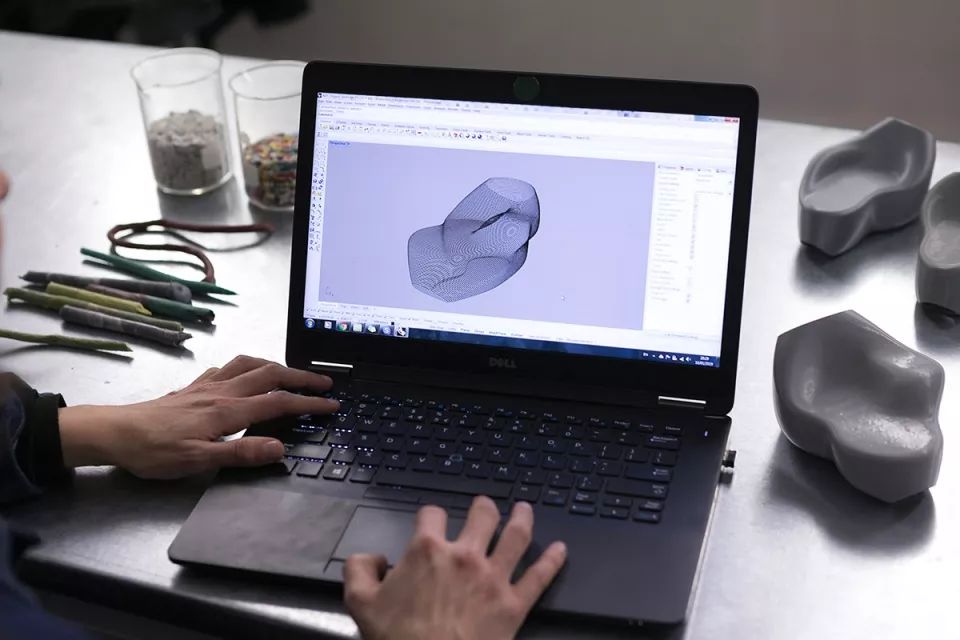 在市民向实验室提供材料后,塑料经过分类、洗涤、粉碎,之后融化,提炼出能做成椅子的聚丙烯(PP)、聚乙烯(PE) 等材料,这两种塑料往往被用在食品包装上。除此以外,聚苯乙烯塑料(PS)和 PET 塑料也可以被利用。