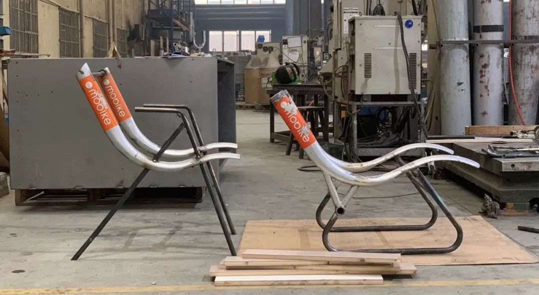 躺椅:经过不断的角度调试发现,车架的弧线是符合人体工学的,于是便将它融入到了休闲躺椅的靠背部分。