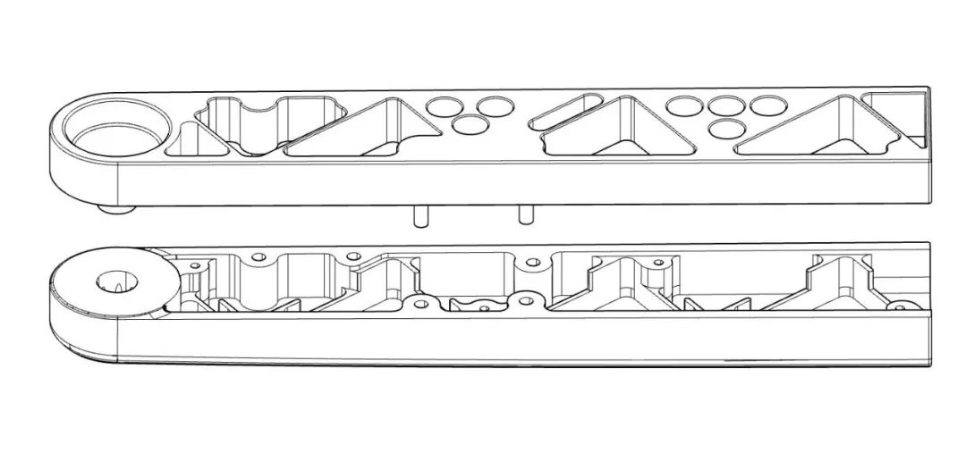 桌面收纳:前叉内部纵横交错的加固肋在增加了PC材料后变成了分工明确的桌面收纳器。