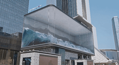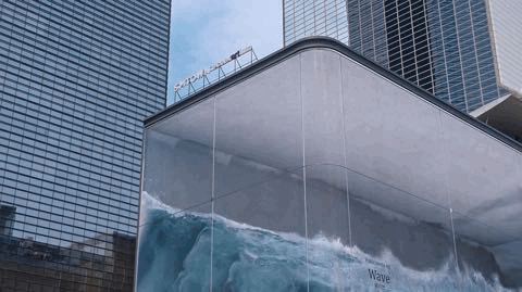 这个名为《Wave》的艺术装置由Smtown coex三面大屏构成立体视觉,配合逼真音效,满屏波澜壮阔的海浪仿佛要冲出屏幕,带着清凉的海风仿佛向游客扑面而来。