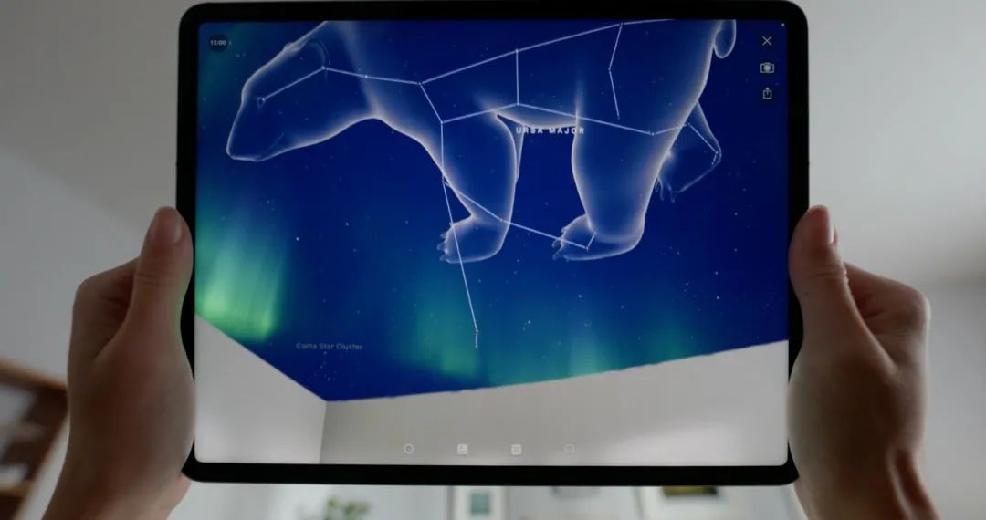 此外,苹果还展示了可以精准识别真实网球场上的网球落点、开发者可以将精细的夜空、宇宙投射在天花板上等多个AR应用。