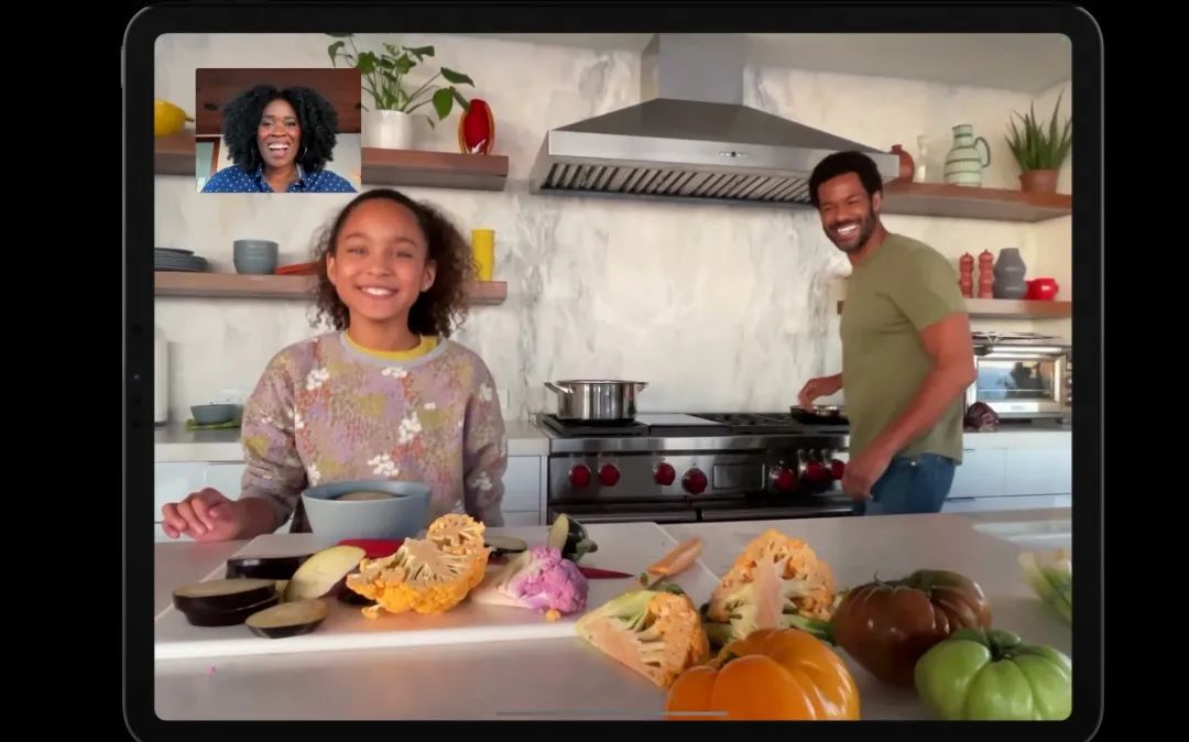 iPad Pro搭载1200万像素前置摄像头,同时具有122度视角,体现在应用上就是人物居中功能。根据苹果的演示,在进行FaceTime通话时,iPad Pro可以通过机器学习识别人物并让摄像头跟随人物移动而移动,从而保持人物的居中。当画面中有多个人物时,摄像头后移,保证全部人物都在画面中。