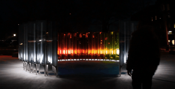 这件作品采用直径25英尺,高8英尺的开放圆圈的形式,使参观者可以在圆圈内和周围走动。材料和互动性质参考了亚历山大历史悠久的琼斯角灯塔所使用的特殊类型的透镜——菲涅耳透镜,这是1800年代最先进的透镜技术。还使用了一系列棱镜来集中光源并直接照明,变成一个向外投射的狭窄水平光束。