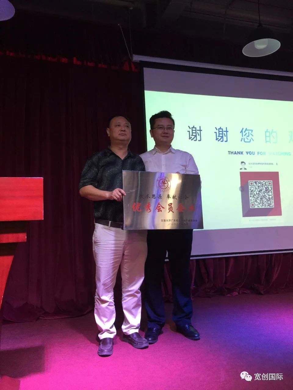 活动最后,交通大学广东校友房地产建筑协会赵顺志会长授予张东博士“交通大学广东校友房地产建筑协会优秀会员企业”荣誉称号。