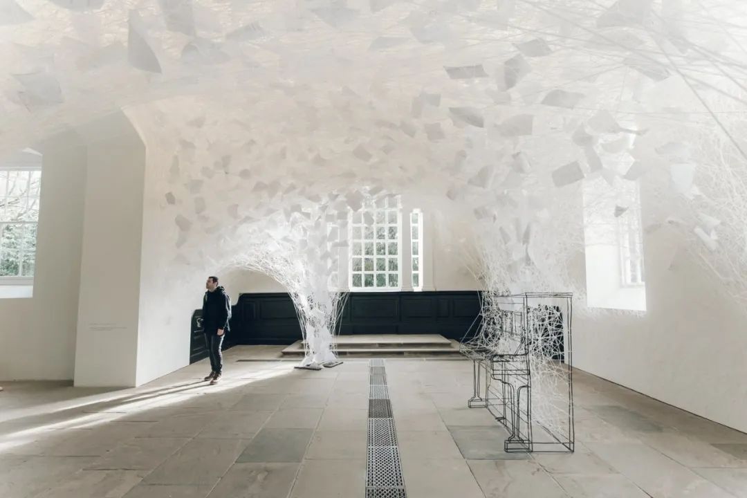 一架只有轮廓的钢琴,喷薄而出的白色丝线如同记忆缠绕在空间中。日本装置艺术家Shiota Chiharu的艺术手法涉及个人主题,例如记忆、丢失、死亡和归属感——「我用艺术创作音乐,但你听不到它。钢琴已经失去了所有功能,但它比以往任何时候都更漂亮。」