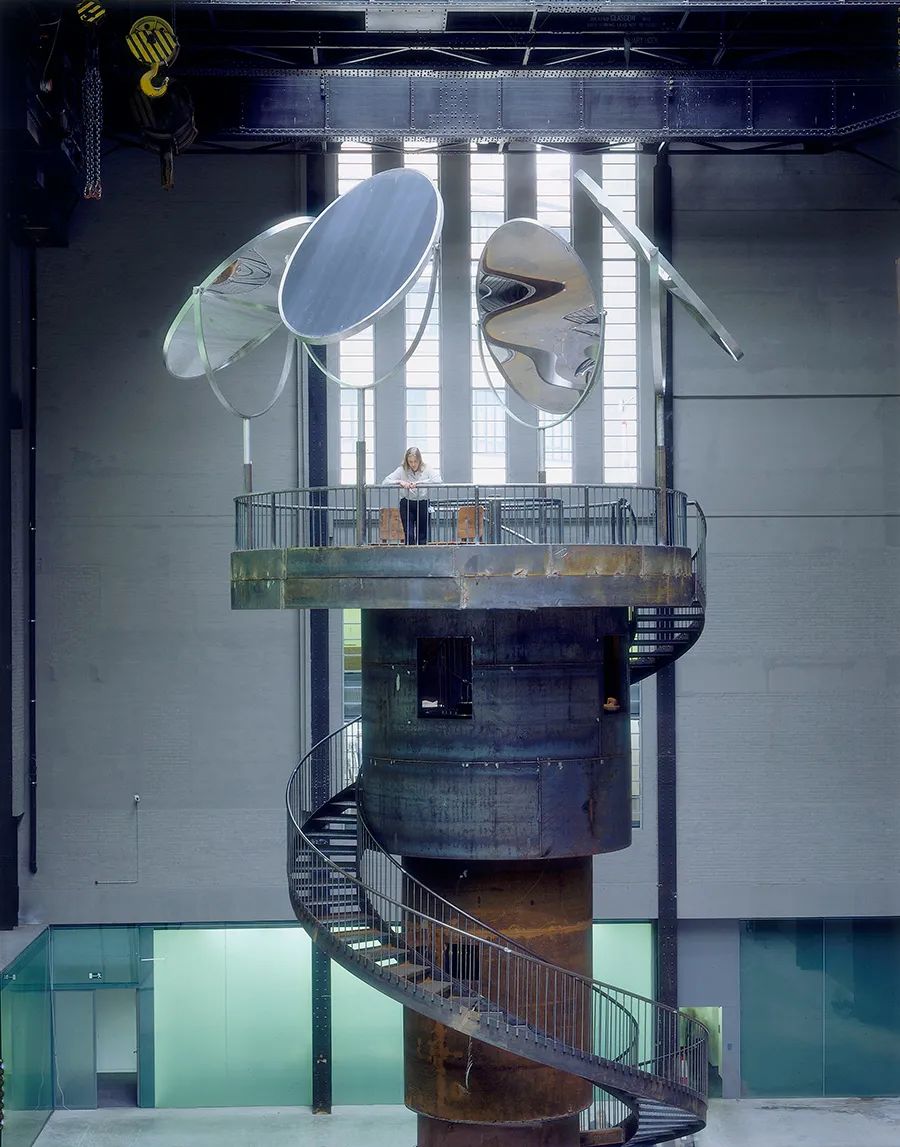 在这个装置里,三座9米高的钢塔刺入天空,生锈的螺旋形楼梯盘旋在中央柱子支撑着被一簇镜子包围的平台。在每座塔中,Bourgeois都放了一个钟形罐,里面装有雕刻的母子雕像。因为童年时期经历的父母和家庭教师之间长达10年的畸形恋情,母亲的角色一直隐忍留在了Bourgeois的内心里,因此母亲的身影一直如影随形,你能在她的作品中窥见超现实主义和女权主义。