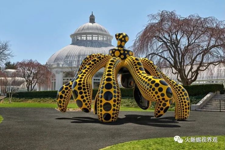 从4月4日开始一直到10月31日,如果走近纽约植物园的话,你就会看到这样的风景。因为92岁的Yayoi Kusama(草间弥生)将自己的很多户外雕塑都搬进了纽约植物园里。这个名为“Kusama: Cosmic Nature”(草间:宇宙自然)的新展,让人漫步在花丛与波点、南瓜装饰的花园中。草间弥生的艺术深受自然世界的启发,如今,她的作品被春日的花草与湿地所包围,展现出了更多的生命力。