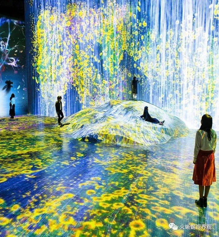 TeamLab的mori building数字艺术博物馆占地10000平方米,拥有多个三维空间,旨在消除艺术、自然和游客之间的界限。参观者“融入”到数字作品中,并成为这些作品的一部分,因为这些作品会随着人的出现而发生变化,每个装置都是实时计算的,并产生一个复杂的、看似自然的世界。比如,当人们站在岩石上或触摸到瀑布时就会发生变化。由于人的互动,水的流动继续实时地转变,以前的视觉状态从未被复制,也永远不会再发生。这也是TeamLab的多媒体互动这几年收到观众喜欢的原因之一。