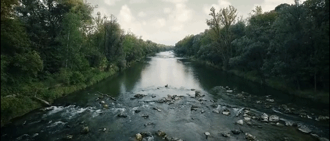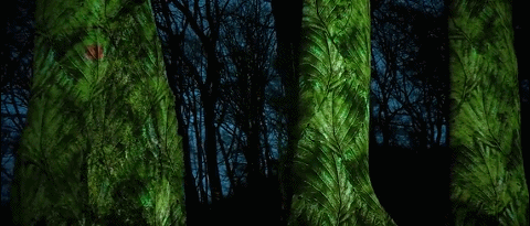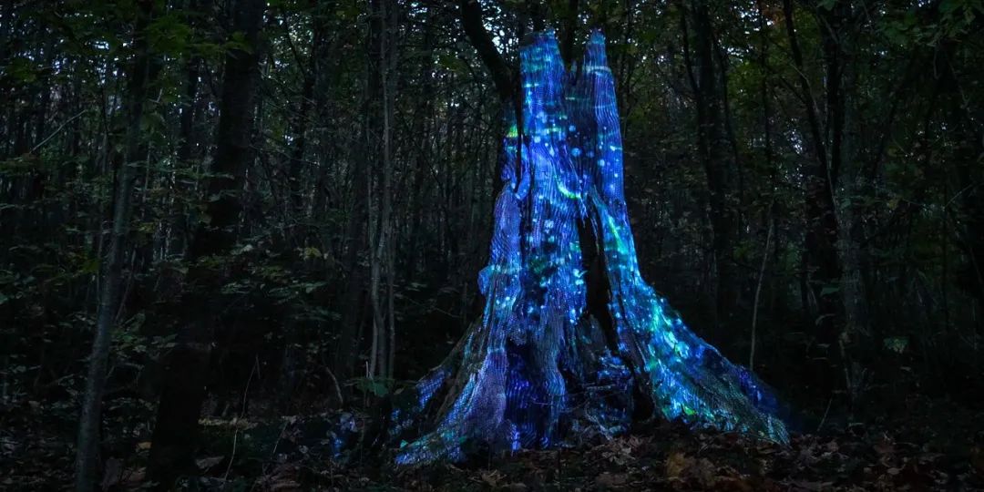 环境保护举措得当,河流清澈见底,森林如夏之原野,苍翠欲滴,再加上伊萨尔河未通航,河床、岩石、森林、树木等非常适合投影造型。经艺术家的巧手,枯木略带几分病态美,在光的照耀下,燃尽一生,绚烂夺目,红似火,蓝如碧空。看罢《元素》,一瞬间领悟“病树前头万木春”的意境。