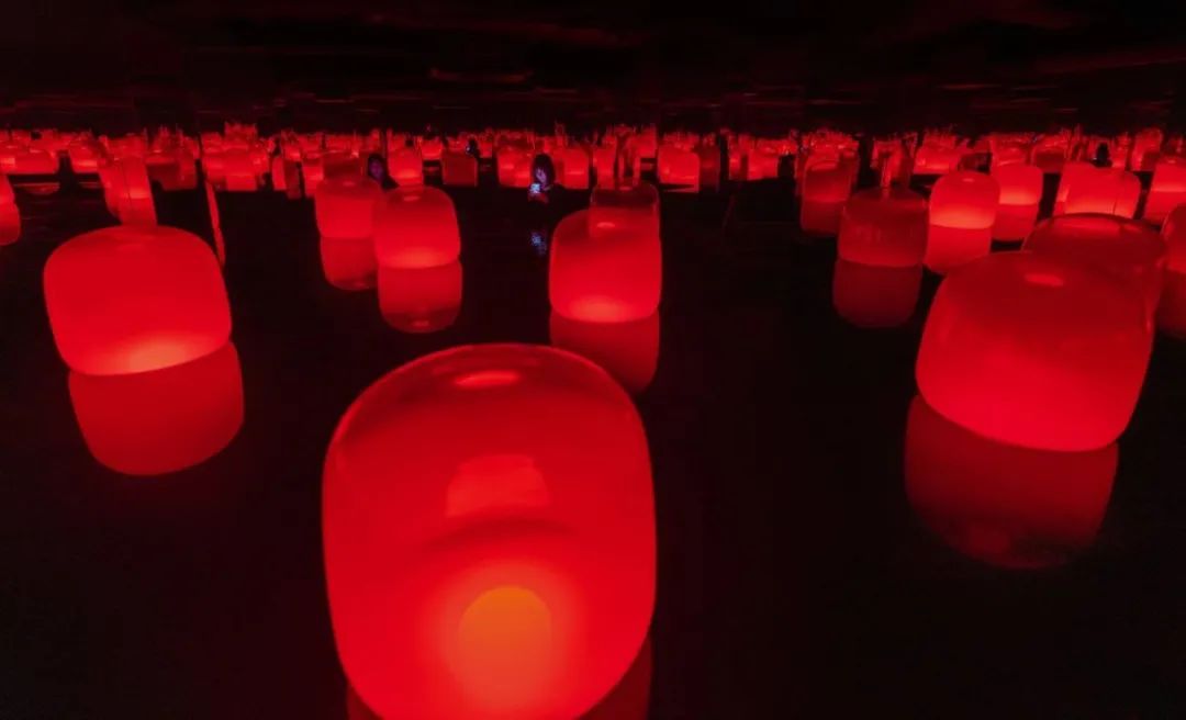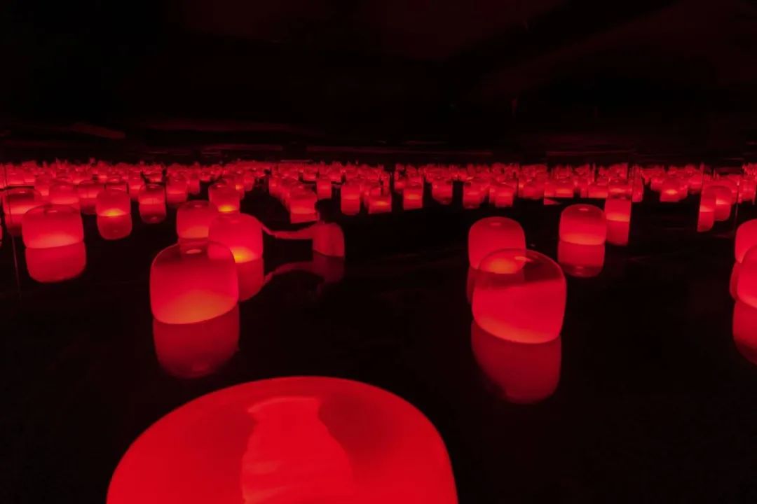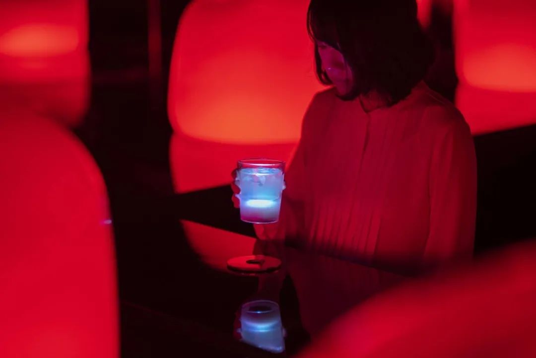 此外,茶还会与附近的《共鸣的浮游灯》产生同步现象。当人们坐在那里,随着时间的推移,空间中所有的茶和灯都会一齐闪烁,或一波一波地闪烁。《茶之书》(1906)的作者冈仓天心(1863-1913)在他最后的书信中写道:“我与宇宙相处融洽,感谢这宇宙所赋予我的一切,不胜感激。”饮茶的时光或许便是追求“自他一体的境界”以及“人与自然的究极合一”的时光。在这梦幻般的环境下,喝茶变成了一种世外桃源般的宁静,给予人们更丰富的感受。