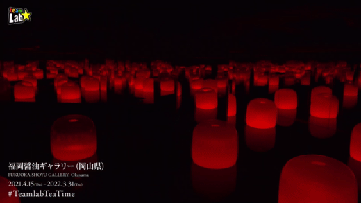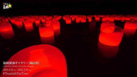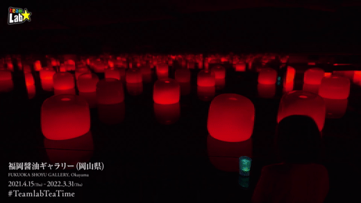 2021年4月15日至2022年3月31日间,teamLab将在原福冈酱油大楼,如今的“福冈商誉画廊”举行其新展《Teamlab: Tea Time in the Soy Sauce Storehouse》。这座大楼建成于明治时代(1868年-1912年),曾经用于生产酱油,如今成为了一个特殊的喝茶艺术空间,以其独特的历史气息赋予了超当代多媒体艺术新的意义。