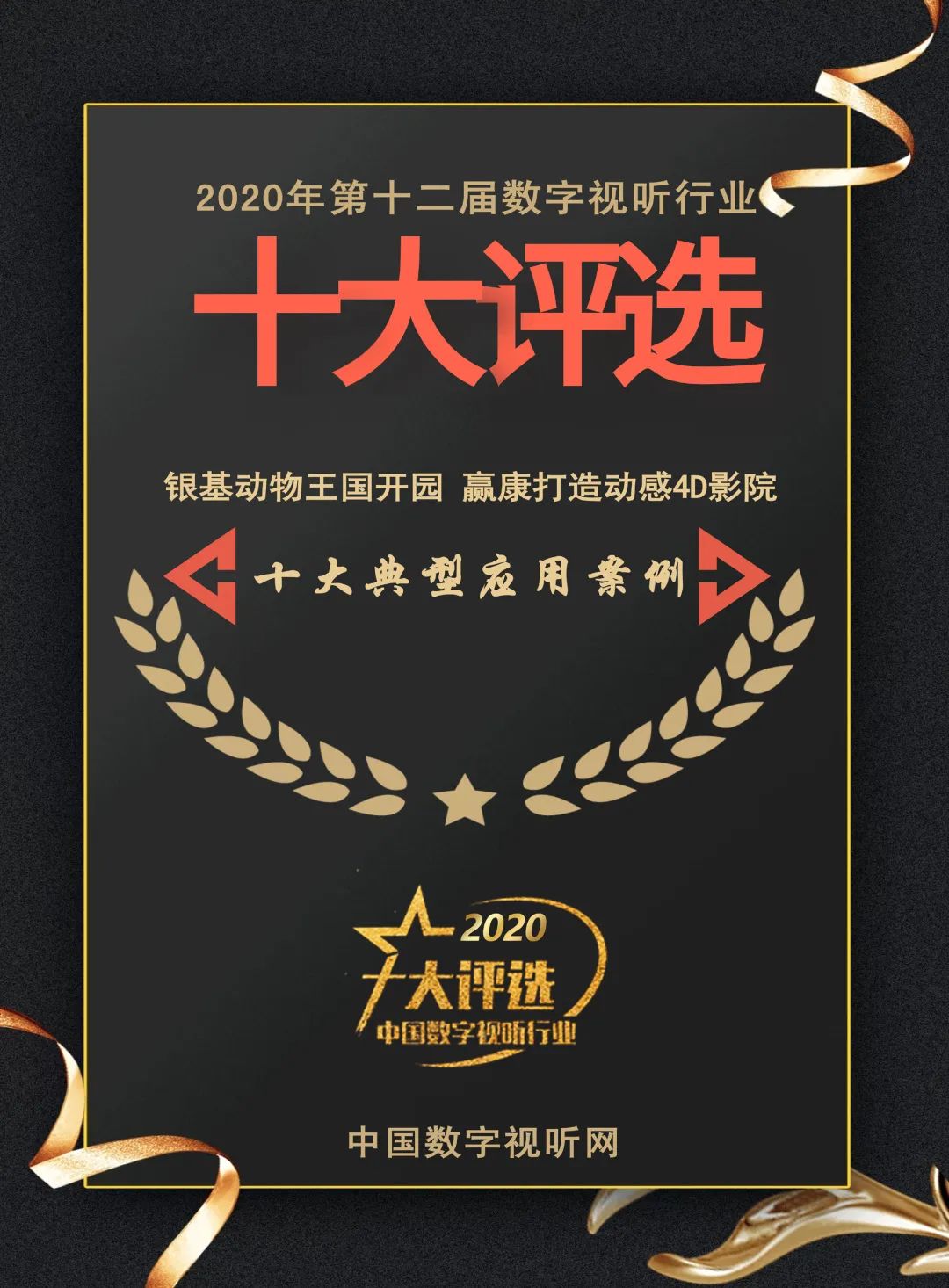该评选中,赢康股份参与的银基动物王国里约大冒险4D影院项目,被评为“十大典型应用案例”,赢康股份为该影院完成了视频系统建设工作。