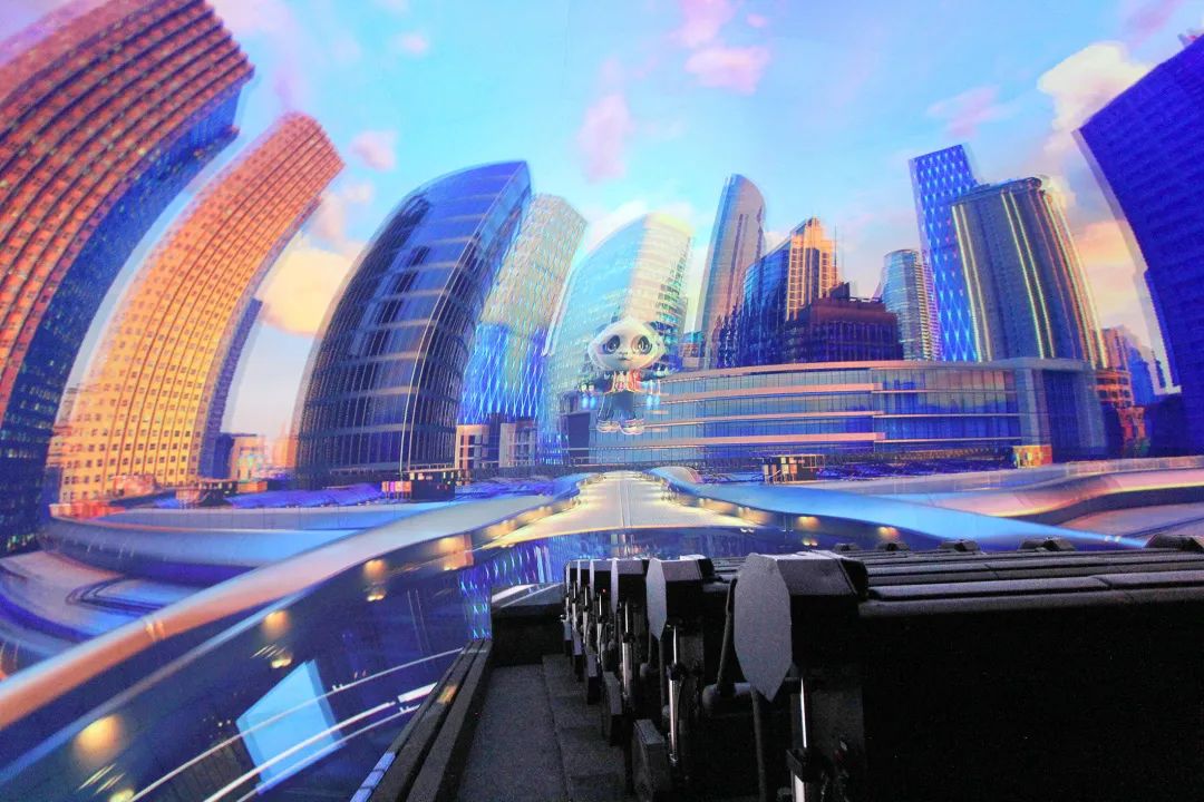 该影院是国内首个使用最新RGB激光技术的4D影院,在亮度,清晰度和色彩还原度上都领先于同类影院。国际级别影片配置,世界领先技术的立体投影系统,逼真的影片效果搭配动感座椅、干冰、雾气、风、雨、特殊音效等,让游客可以体验一场集视觉、听觉、触觉于一身的超震撼、沉浸式观影之旅。