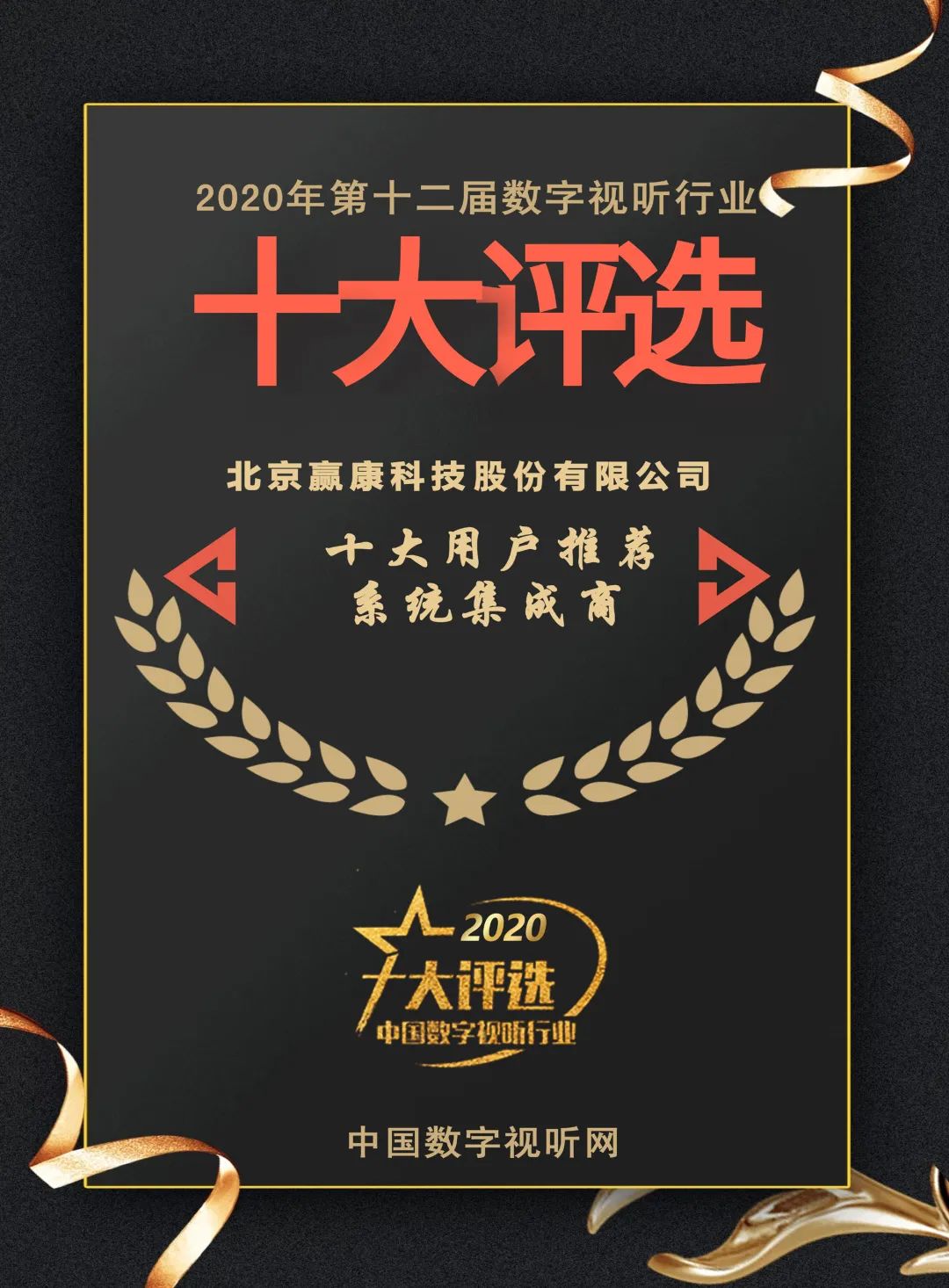 - 赢康股份荣获2020数字视听行业两项年度大奖