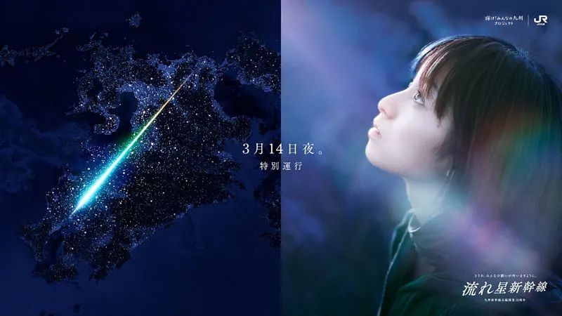 日本为纪念九州新干线开通十周年,JR九州官方于3月14日晚特别运行了“流星新干线”列车。纪念版“流星新干线”在列车内安装了染色灯和光束灯,28条光束通过车窗射向窗外,随着列车的运行,沿途从车窗射出七色光茫,犹如流星掠过,借以向因疫情而陷入困境的九州传递希望之光。