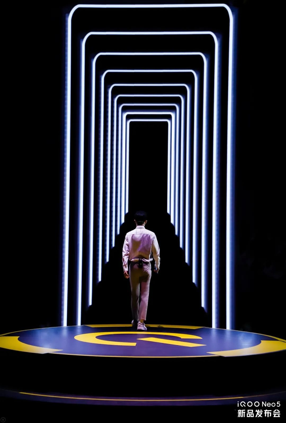 在iQOO Neo5发布会上,我们没有看到太多花里胡哨的元素,却始终渗透出品牌基因。视觉设计很简单,超宽背屏结合地屏的呈现大开大合。加上宽阔的舞台空间,高机位大全景调度,让效果给得很足,极大攫取了观众的注意力,做到了less is more。