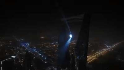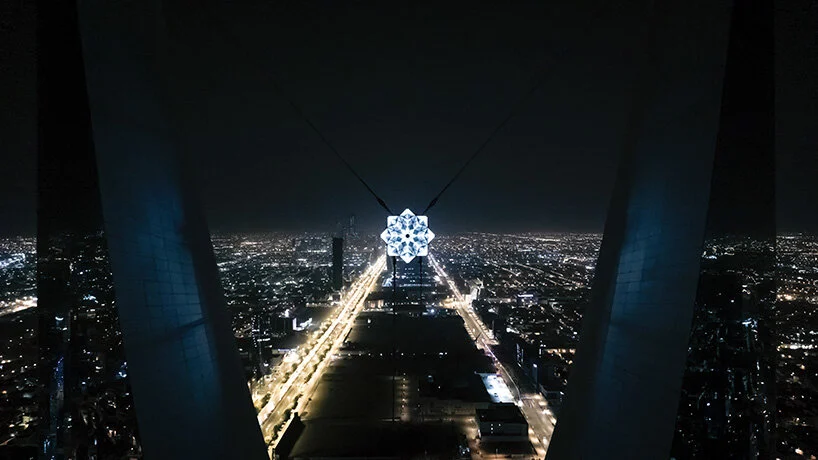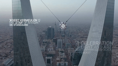 Koert Vermeulen的作品《Star In Motion》在王国塔顶256米处,闪耀着耀眼的光芒,照亮了利雅得上空,同时强调了节日的主题:在同一片天空下。