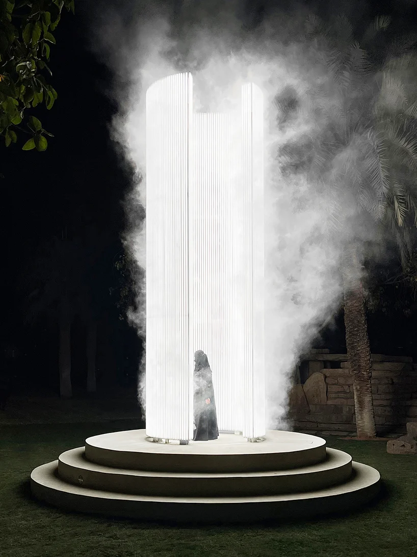 大型灯光雕塑《Beacon》以一根指向天空的柱子的形式,邀请观众沉浸在耀眼的白光中,唤起天地之间的崇高物质。