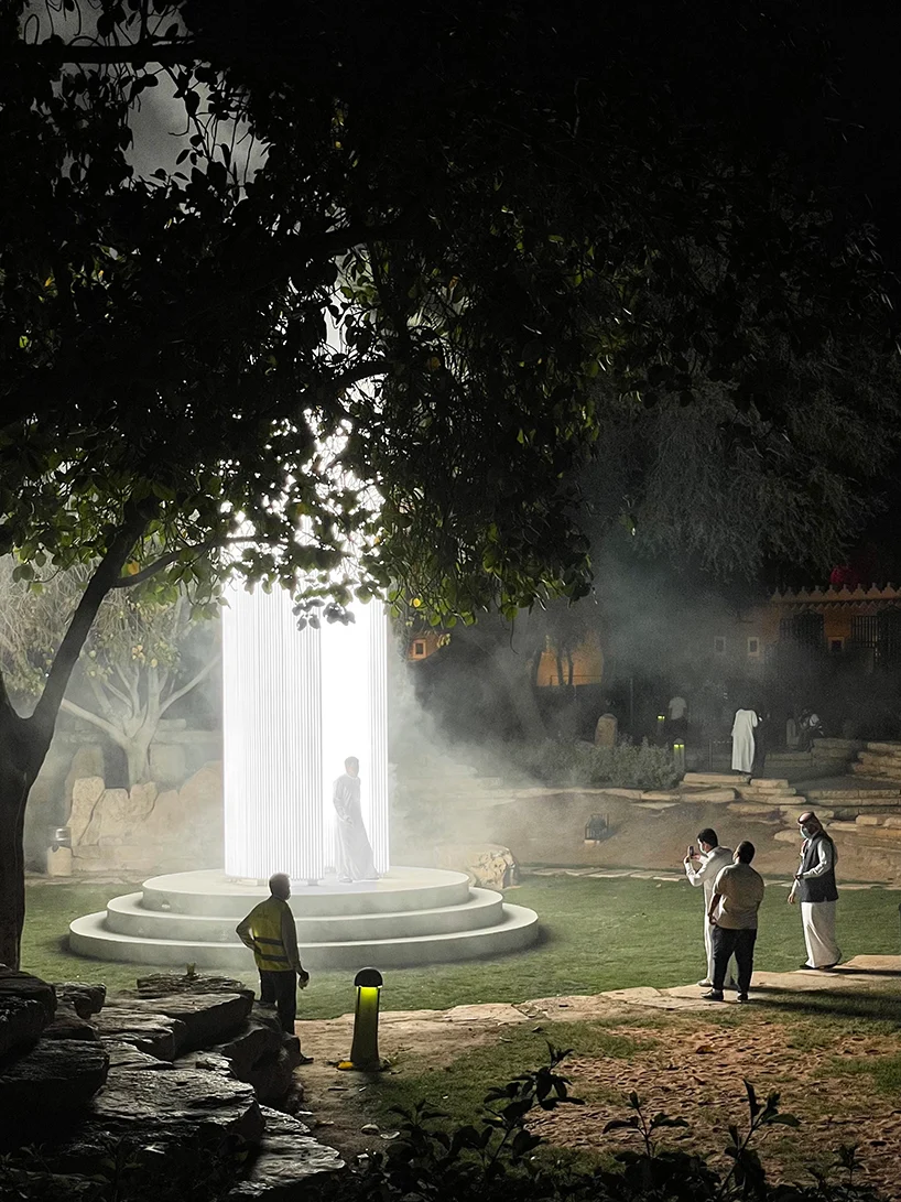 波兰视觉艺术家Karolina Halatek在阿卜杜勒阿齐兹国王历史中心的哈拉斯公园内,用“一束光”将天地连接。