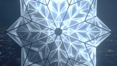 到了晚上,它变成了一个闪亮的灯塔,在整个城市创造出令人赞叹的表演。