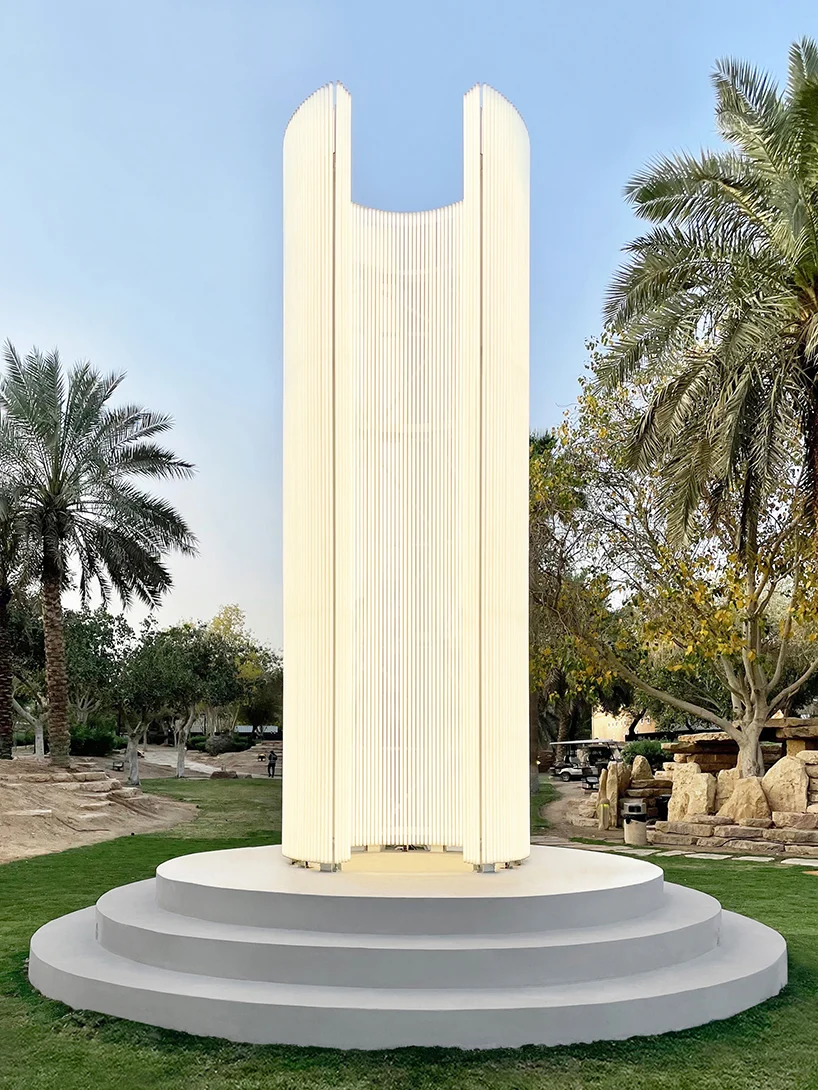 《Beacon》既保留了纪念性的品质,又提供了一个小巧而私密的空间,观众可以进入,从内部体验作品,改变视线,并被意想不到的非凡光辉所包围。