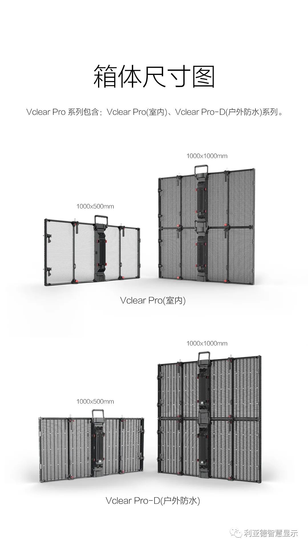 利亚德智慧显示·Vclear Pro 系列包含:Vclear Pro(室内)、Vclear Pro-D(户外防水)系列。具有透明显示、结构新奇、高清高亮、应用简单、智能操控、节能环保、素材及显像新颖等特性。凭借创造性的独家设计和出色的产品体验,先后斩获国际设计领域“奥斯卡”大奖:德国iF&红点双奖。广泛应用于户内外、舞美租赁等各类场景,实现独一无二、新颖独特的场景应用。