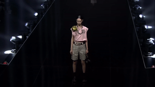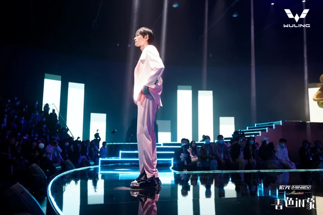 现场,宏光MINIEV马卡龙跨界设计圈,与国际时装设计师品牌MASHAMA联名发布五菱潮服,现场潮秀来袭,时尚格调十足。整个走秀过程中,视觉内容切换了另一种演绎风格,以霓虹灯效果勾勒BOX边框,效果一样出彩。