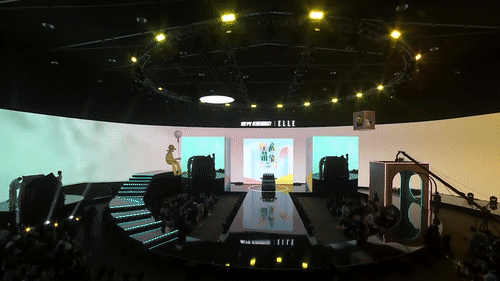 内场的设计是这次发布会分享的重头戏,虽然在发布环节上没有特别多的惊喜设计,可撑起这场发布会颜值与记忆点的,是舞美与视觉。这就回到Event圈的专业本身了,发布会往往是舞台设计最具创新的平台之一,尤其是车企发布会,在屏幕及舞美的运用上常常大胆尝鲜,本次发布会的重点是推出三款马卡龙春色EV车型,因此我们看到主创团队在现场包裹感大屏的前方,又摆放了三个BOX,而在发布过程中,Speaker讲解车型的过程也并未采用大屏铺开的PPT,而是有的放矢的,把演讲内容拆分为三栏呈现在三块BOX屏幕上,开场及串场的演绎环节,BOX与大屏的内容相互配合讲故事,并且在内容制作上抢尽了风头。由于有走秀与出车的特殊需求,舞台两侧T台口直接延展至舞台中央,中间的屏幕做了内开合门,服务于出车环节。接下来,我们一起看看这场发布会的舞美设计。
