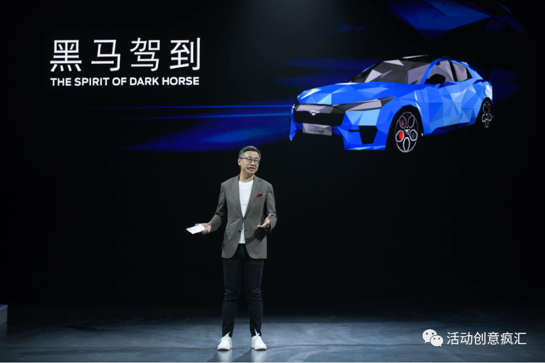 再看现场的主视觉设计,我们心中难免又泛起一丝丝疑问,竟有车企敢这样折腾自己的新车?!